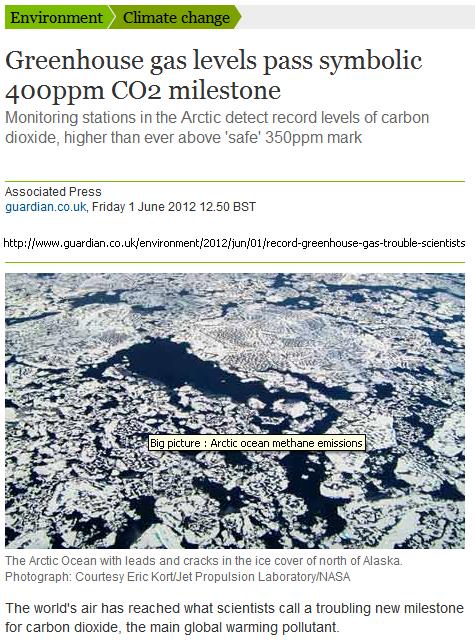 Just in time for the celebration of 2012 World Environment Day we read that the Arctic region has reached the 400 ppm CO2 level.