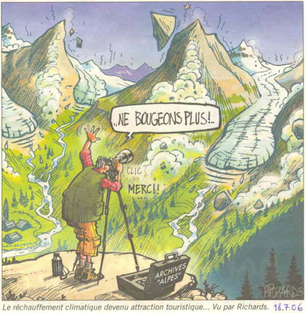 des glaciers endans les Alpes et ailleurs. Tout le monde y parle. Maintenant Monsieur Al Gore dit que la crise du climat devrait être considéré comme tâche morale et responsabilité éthique parce que la survie de la civilisation humaine est en jeu. Nous n'avons que cette planète ici. Nous n'avons qu'une futur et celle-ci n'est ni républicaine, ni démocrate ou libérale. ("Die Klimakrise sollte als moralische Aufgabe und ethische Verantwortung betrachtet werden, weil das Überleben der menschlichen Zivilisation auf dem Spiel steht. Wir haben nur diesen einen Planeten. wir haben nur eine Zukunft und die ist weder republikanisch noch demokratisch oder liberal."(Spiegel 29/2006, p. 137.)) C'est tout belle et bien. sauf qu'il n'y a pas de "crise". Dans une crise le comble des difficluté" ou le moment le plus grave d?une maladie est atteint. Après, le patient récupère ou il/elle meurt. Le changement de climat et le rechauffement n'ont pas encore atteint leur maximum. Tout au contraire. Nos émissions de gaz à effet de serre ont déclenché ces processus et nous ne pouvons pas les arrêter. Ca prendra des centaines d'années, sinon des milliers d'années pourque la nature absorbe (un part de) ces émissions. En outre nous continuons à augmenter nos émissions au lieu de les réduire. Nous continuons à "développer" et à croître économiquement et chaque Franc suise, Euro ou Dollar de croissance économique équivaut une augmentation correspondente des émissions de gaz à effet de serre. Les "mesures" que nous prenons avec des jolis mots et des belles conventions internationales (Kyoto) ne sont que des pièces de papier sans signification réelle. Parce que les méchanismes prévus sont ineffectifs - "développement propre" (Clean development mechanism), "implémentation commune" (Joint implementation) et "le commerce avec des droits d'émissions" (Carbon trade). Cependant, ce sont exactement ces "mesures" que Monsieur Al Gore propose pour remédier les problèmes. En outre il dit, en chœur avec les économistes, que la lutte contre le changement de climat représente des opportunités de commerce. It's good for business. Il n'a pas encore compris que c'est exactement le business, les activités humaines débordantes, qui sont à l'origine de tout problème environnemental y compris le rechauffement climatique mondial. C'est notre hyperactivité, notre expansion sans restraint, qui dé la nautre, pollue et empoisonne l'environnement, qui épuise les ressources non-renouvellables - à une vitesse toujours plus haute à cause de la croissance économique. Regardez vous-mêmes sur la table de croissances ! Trois pour cent de croissance annulelle est le cible des économistes ! Ca veut dire qu'il y aura 2,1 fois plus de tout - des voitures, des petit pains, des accidents des maisons - dans une période de 25 années seulement - en une seule génération ! Et nos pays, ça croît aussi ? La Suisse, 41000 de kilomètres carrés - c'est fixe. A ce taux toute la Suisse, en 100 ans ne consistera que des bâtiment et rues et chemins de fer. Un pour cent par année. C'est la surface qui est chaque année recouvert pas l'aspahlt et le béton des routes et pont, par les construction des maisons et des usines sur des terrains agricoles. Notre société du savoir sait calculer. Mais elle manque de voir les calculs de base et les faits incontestables parce que c'est bad for business - ça freine le Produit Interne Brut le PIB. Vos enfants vous saluent, chères mères, chers grand-pères. Vous les connaissez déjà. Vous les avez tenus dans vous bras, baptisés. Ce sont les fleurs de vos vies. Mais dès que vous êtes au parlement, dans vos bureaux, chers &eacure;lu, chères élues, ce n'est que le commerce et le profit financière qui règne vos esprits. Et même si vous doutez du changement de climat, est-ce que le principe de la précaution ne devrait pas vous dire d'être prudents ? Ne devriez-vous pas arrêter la croissance parce que il n'y a vraiment qu'une terre avec des ressources limitées ? |