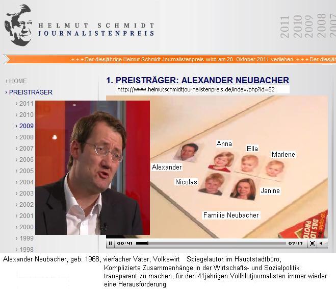 Herr Alexander Neubacher sei von vornherein entschuldigt. Er ist verheiratet und Vater von vier kleinen Kindern. Er kann nicht anders. Er muss, wie er selber zur Verleihung des Journalistenpreises im Video erklärt, sein Geld durch die Verbreitung schlechter Nachrichten verdienen. Dennoch muss er zwangsläufig optimistisch bleiben, aus persönlichen Gründen und weil der Spiegel seine Zeitschrift sonst nicht mehr verkaufen würde.