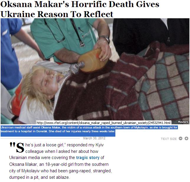 She’s just a loose girl,” responded my Kyiv colleague when I asked her about how Ukrainian media were covering the tragic story of Oksana Makar, an 18-year-old girl from the southern city of Mykolayiv who had been gang-raped, strangled, dumped in a pit, and set ablaze.