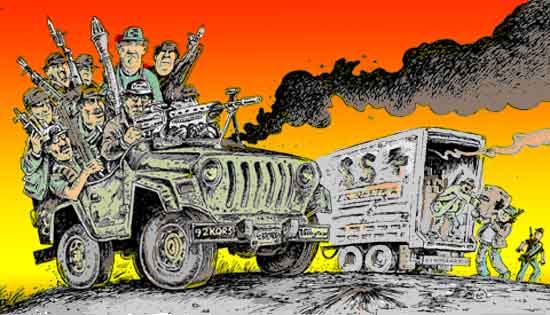 The oil embargo forced the government to ration fuel. Rationing hit the suburbs hard. The suburban economy, wholly dependent on cheap and abundant gasoline suffered a total economic collapse. It became obvious to the crisis managers in the Department of Homeland Security that central distribution centers would have to be set up to deliver food to the growing number of jobless suburbanites. The government urged suburbanites to abandon their homes and move to makeshift quarters in stadiums and shopping malls. Most suburbanites, conditioned to resent big government resisted the orders to leave their homes and instead joined militia groups that ambushed aid convoys, stealing the food and fuel destined for the cities and central food aid distribution centers.